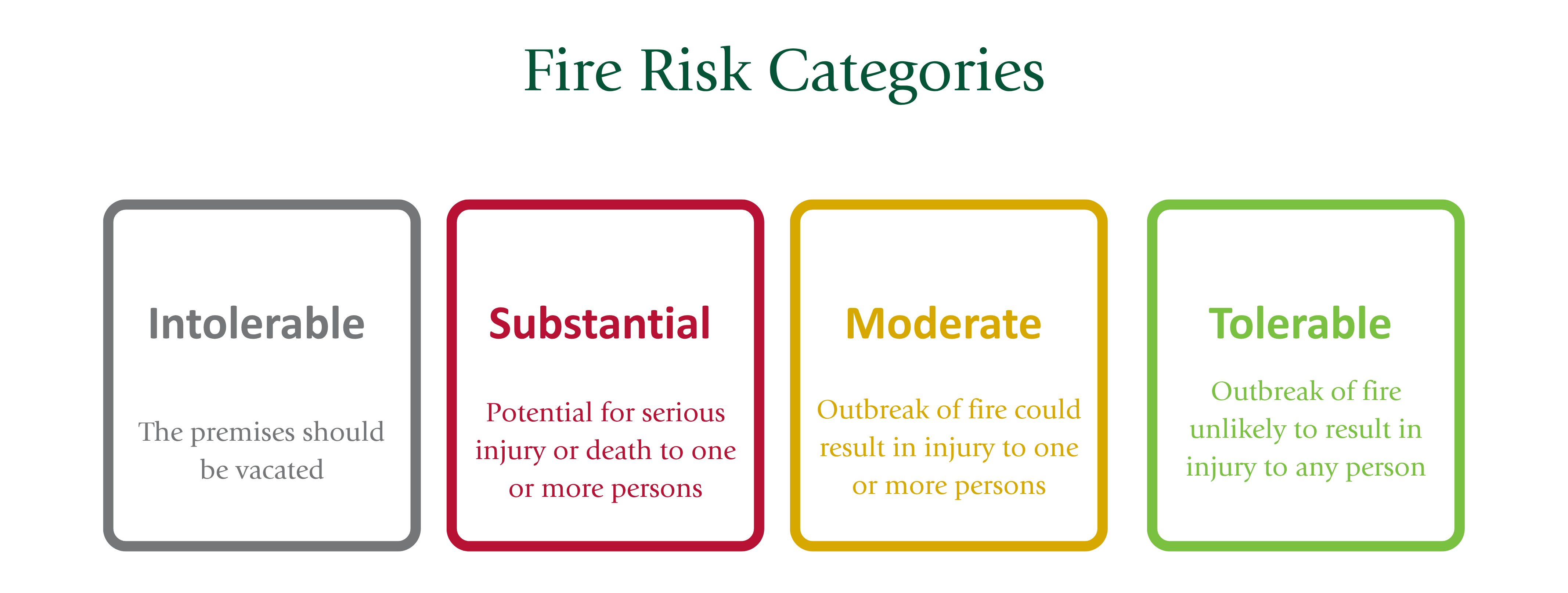Tolerable - Outbreak of fire unlikely to result in injury to any person