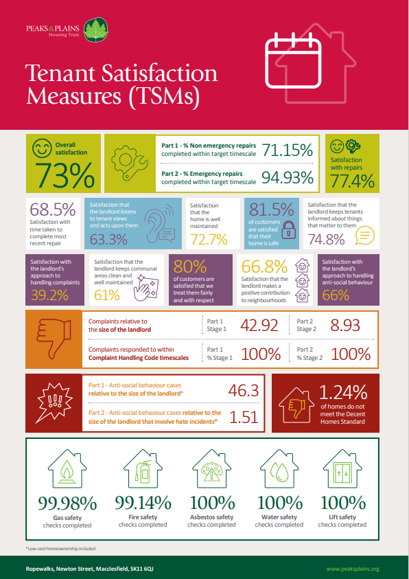 We are required to collect and report each year on our performance. Our performance is looked at by using 'Tenant Satisfaction Measures' - these are determined by the regulator of social housing.